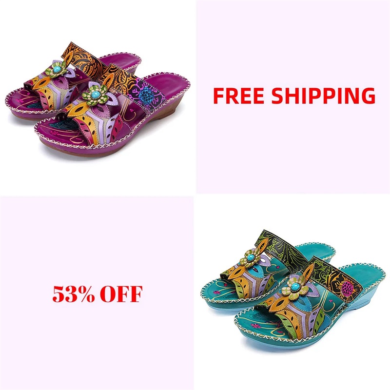 2023 Summer New Women's Metal Decor Feature Pattern Wedge Flip-Flops are specially developed, designed by AZDEALY TEAM, with a three arch support design and a soft sole to keep your feet comfortable, health safe, and style on point!